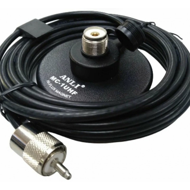 Anli MC-1 UHF магнитное основание, имеющее диаметр 80 мм и разъем подключения антенны SO239 (PL-гнездо). Магнитное основание Anli MC-1 UHF имеет предустановленный кабель RG-58 A/U длиной 4.5 метра. Кабель защищает от помех и минимизирует потери сигнала, благодаря применению двойного экрана и витой центральной жилы. Кабель очень гибкий, что облегчает аккуратную установку в автомобиле. На кабеле установлен разъем PL-259, что обеспечивает совместимость с различными типами радиооборудования - радиостанциями, усилителями и тд. Магнитное основание Anli MC-1 UHF устанавливается на металлические части автомобиля - крыша, капот, багажник. В комплект магнитного крепления входит защитная прокладка для улучшения сцепления и защиты от царапин на лакокрасочном покрытии автомобиля. Корпус изготовлен из высококачественного ABS пластика, который обеспечивает хорошую защиту от агрессивного воздействия атмосферы и влаги.