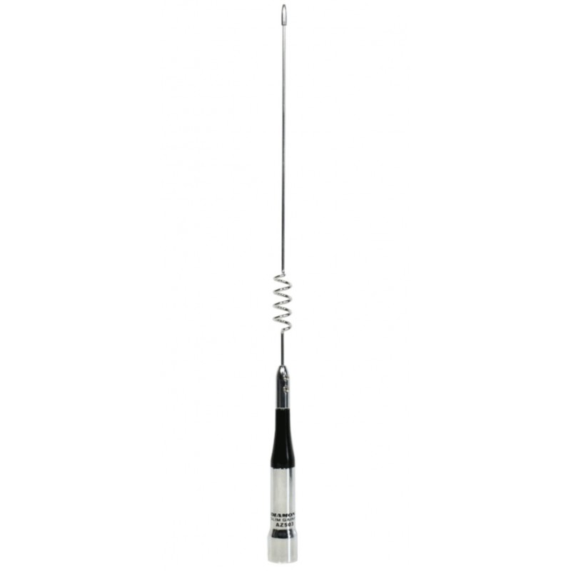 Автомобильная антенна Diamond AZ503 имеет прочную конструкцию, обеспечивающую устойчивость к механическим повреждениям и внешним факторам окружающей среды, обеспечивая устойчивость к коррозии и длительный срок службы даже в суровых погодных условиях, что делает антенну высоко надежной и долговечной. Антенна Diamond AZ503 отличается уникальной конструкцией с одним волновым элементом 1/4 длины волны для диапазона частот VHF и одним волновым элементом 3/8 длины волны на частотах UHF. Эта конфигурация обеспечивает оптимальную производительность в различных частотных диапазонах. Антенна Diamond AZ503 с хромированным глянцевым покрытием катушки у основания, излучателем из нержавеющей стали и дополнительной катушкой с воздушным сердечником на штыре. Катушка у основания антенны очень тонкая по сравнению с антеннами других производителей.