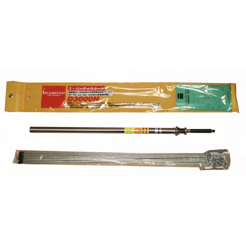 Длина антенны Diamond D3000 составляет 1.7 м, а максимальный диаметр по противовесам 84 см. Антенна компактна, но при этом мощная. Антенна подходит для передачи в любительских диапазонах VHF и UHF и может заменить или дополнить обычные базовые антенны. С некоторыми ограничениями также возможна передача сигнала на частотах 900 МГц и GSM. При работе на передачу антенна выдерживает мощность до 20 Вт на частотах 50 МГц, и до 200 Вт на частотах 144 МГц, 430 МГц, 904 МГц и 1200 МГц.. Совместимость с мачтами диаметром от 25 мм до 50 мм позволяет легко установить её в удобном месте.