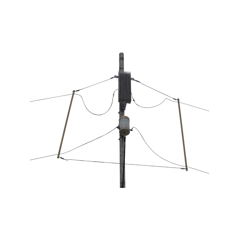 Radial T2-FD-500 L базовая широкополосная дипольная антенна для работы на частотах 2-30 МГц. Различные варианты установки - растянутое с использованием двух опорных точек, диагональное с использованием одной опоры, на одной основной опоре методом перевернутого VEE. Для повышения эффективности антенны в длинноволновых участках ее геометрические размеры увеличены в 2 раза по сравнению с классическим исполнением у Radial T2-FD-500