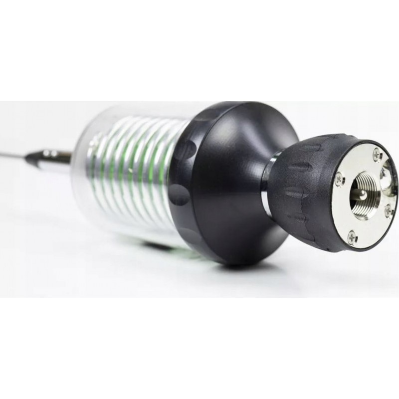 Автомобильная антенна Sirio Bull Trucker 5000 PL LED имеет прочную конструкцию, обеспечивающую устойчивость к механическим повреждениям, внешним факторам окружающей среды, к коррозии и длительный срок службы даже в суровых погодных условиях, что делает антенну высоко надежной и долговечной. Антенна Sirio Bull Trucker 5000 PL LED изготовлена из высококачественных материалов, таких как алюминий, хромированная латунь, нержавеющая сталь 17/7 PH и термопластик. Штырь излучателя, имеющий коническую конструкцию, из нержавеющей стали 17/7 PH, все остальные металлические части антенны выполнены из хромированной латуни. Излучатель антенны жесткий, не деформируется на высоких скоростях и характеризуется высокой прочностью, а также очень высокой коррозионной стойкостью. Штырь излучателя имеет длину 150 см и крепится к катушке. Конструктивно Sirio Bull Trucker 5000 PL LED автомобильная антенна с низко расположенной катушкой. Катушка изготовлена из алюминиевого провода 9 AWG круглого сечения 3 мм без точек пайки, все крепления винтовые. Катушка с воздушным сердечником, имеющая диаметр 48 мм, заключена в полупрозрачный зеленый пластиковый корпус с резиновым уплотнителем, надежно защищена, обладает высокой добротностью и имеет малые потери. В корпусе катушки установлена светодиодная плата, которая загорается при активации режима передачи.