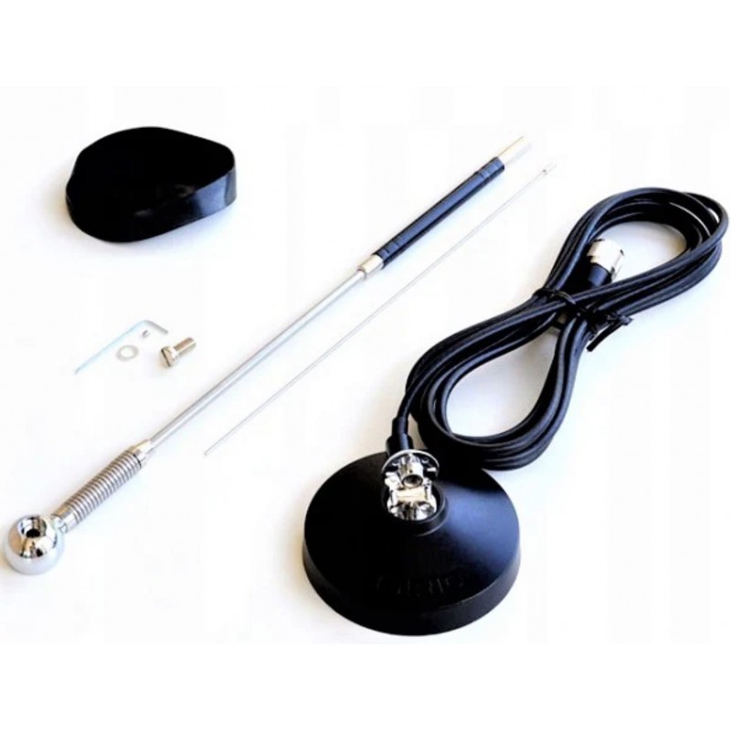 Sirio Mini Mag 27 очень компактная автомобильная антенна с приемлимым уровнем КСВ. Это надежная антенна с коротким излучателем на магнитном основании, которая идеально подойдет для локальной работы, особенно в городских условиях.