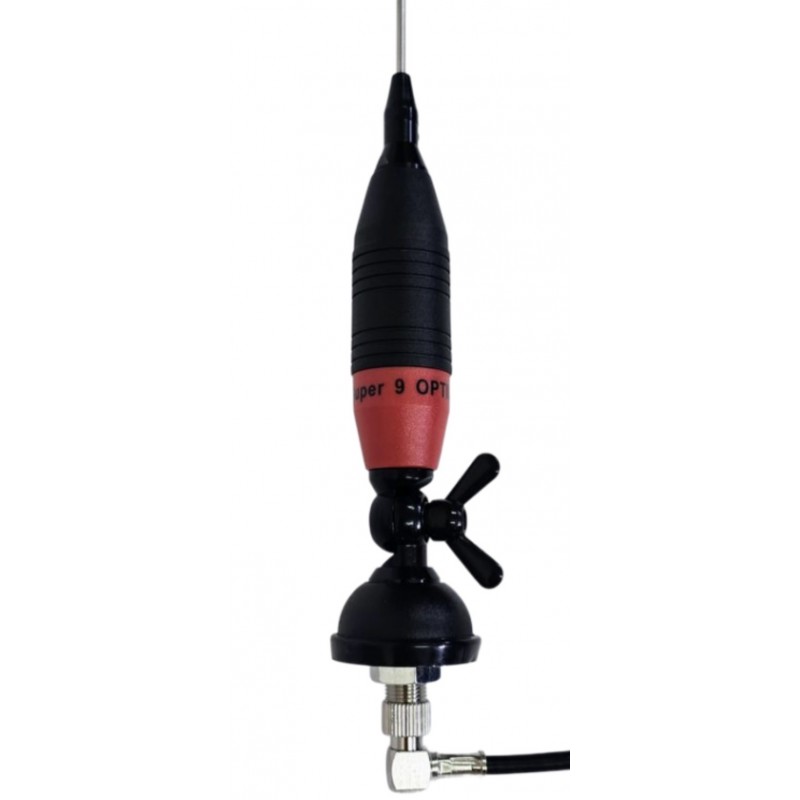 Автомобильная антенна Optim CB Super 9 обеспечивает работу на частотах СиБи диапазона от 26 МГц до 27 МГц. Антенна обеспечивает приемлимый уровень КСВ на всем рабочем диапазоне частот. Для получения более оптимального уровня КСВ предусмотрена настройка антенны путем изменения длины штыревого элемента. Обладает полосой пропускания 1500 кГц.