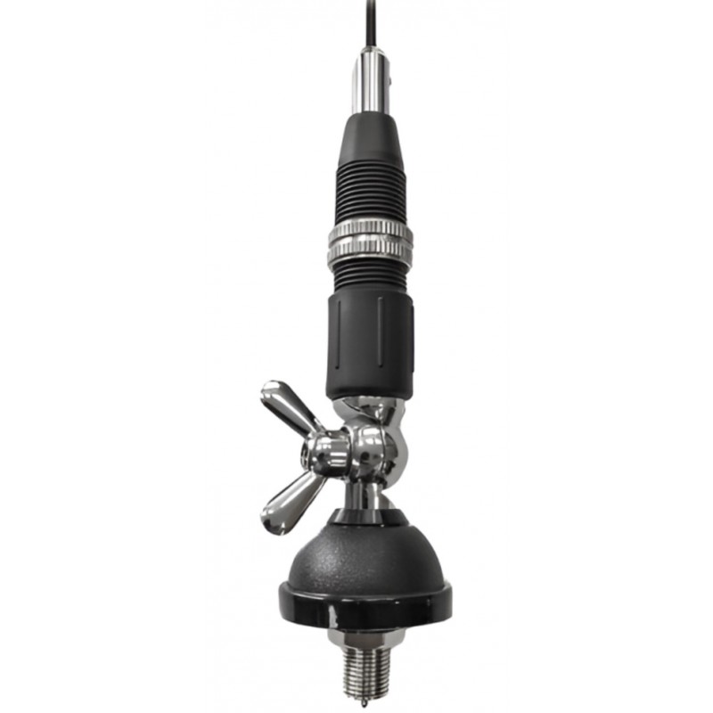 Optim SN Small автомобильная антенна с врезным основанием для работы на частотах 27 МГц. У основания антенны расположен поворотный механизм, который позволяет задать нужный угол наклона.