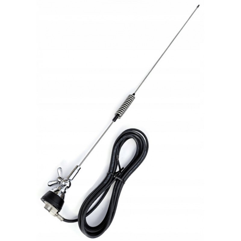 Длина антенны Sirio SU 370-490 SL Chrome в заводской поставке составляет 0.745м, но конечная длина зависит от рабочей частоты и составляет от 74.5 см (370 МГц) до 50 см (490 МГц). Антенна при работе на передачу выдерживает мощность до 100 Вт. Антенна оснащена врезным основанием с кабелем RG-58 длиной 5 метров, обеспечивая оптимальный вариант установки на автомобиле и совместимость с различными типами креплений. Кабель без установленного разъема позволит легко проложить его в автомобиле и укоротить до нужной длины, с последующей установкой нужного вам разъема. Автомобильная антенна Sirio SU 370-490 SL Chrome устанавливается на автомобиль на кузов автомобиля в монтажное отверстие с диаметром 19 мм, а также с помощью креплений на багажник, на водосток, на рейлинг, на зеркало или магнитного основания с креплением DV-типа. Антенне требуется контакт с корпусом автомобиля (заземление), а КСВ антенны зависит от расположения антенны. Поэтому после установки антенны требуется настройка, которая обеспечит вам минимальный уровень КСВ. Сопротивление антенны 50 Ом, что гарантирует совместимость с широким спектром радиооборудования.